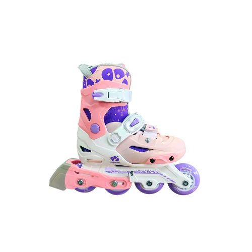 micro&cosmoid深度合作伙伴联名款,致力于打造高品质、高性价比的幼儿园轮滑运动产品;鞋壳采用耐冲击PP材质一体注塑成型,科学设计支撑结构,鞋底加宽受力更加均衡;加厚CUFF 支撑性更稳定,三重芭扣锁定系统,可拆卸防磨块;记忆海绵内胆渐变色印刷,PVC鞋垫和加厚大块PU减震垫片,长时间滑行更加 舒适;锁轮功能和右脚大块刹车器,学习轮滑更轻松安全,多功能适合更多轮滑技术教学,一鞋两用平花休闲轻松搭配。